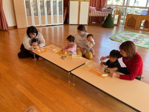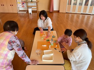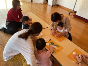 HOME > 日記 > 日記 粘土遊び 投稿日:2025年10月30日 今日は、粘土遊びをしました。手でクルクル丸めたり、ヘラやカップ、型抜きを使ったりして、ごちそうを作ってごっこ遊びを楽しみました。0歳さんも、米粉粘土の感触を楽しみました。 合掌 -日記