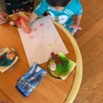 今日は、オクラや人参、玉ねぎ、ピーマン、レンコンなどの野菜でスタンプ遊びをしました。野菜の形に興味をもつ姿も見られ、たくさんスタンプを押して楽しみました。 みんなで種を蒔いた畑の人参も、大きく育ちまし ...