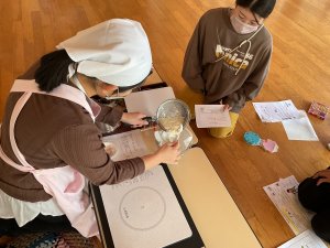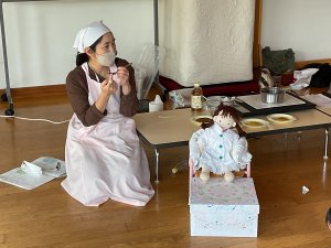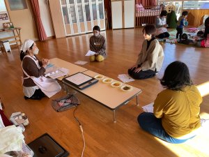 今日は離乳食講座で、栄養士さんに中期を中心にお話をしていただきました。食材の形状や固さを実際に見ながらのお話はわかりやすく、手作りのカッテージチーズの試食をしたりアレンジの仕方も教えていただいたりしました。食事をする時の椅子の座り方やコップ飲みの練習の仕方も、とてもわかりやすかったです。