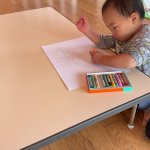 今日は、お絵描きやシール貼りをしました。色々な色のクレヨンを使って楽しそうにお絵描きをしました。シール貼りでは、車のシールを持って描いた道路の上を走らせる姿がかわいかったです。 合掌