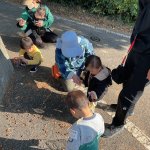 今日はままごと遊びの予定でしたが、先週雨のためお芋堀りができなかったので、予定を変更してさつま芋掘りをしました。お芋の蔓を「うんとこしょ、どっこいしょ」と言いながら引っ張ったのですが、なかなか抜けなく ...