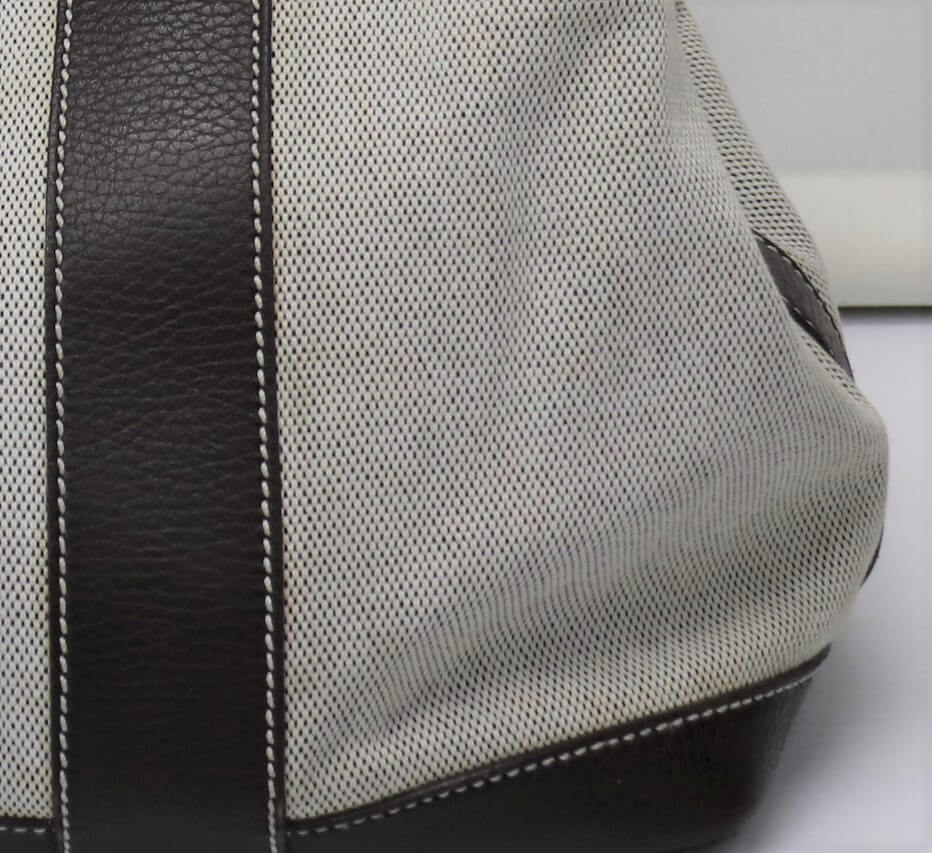 Case.015 靴・カバン エルメス・ガーデンパーティの復元 リペア シミ抜き 染色補正 品名:HERMÈS ガーデンパーティ ご要望 「全体の茶色いシミを落として下さい」とのご要望でお預かりしました。 復元の内容 相当古い水溶性のシミで、全体に汚れているため、まず、水性処理で全体の汚れを落としてから、変色シミ部分を中心に、もう一度集中してシミ抜きを行ないました。 それでも残った部分を、部分漂白→色合わせ→染色補正を行い、その後、全体をうっすら、ゆっくりと、裏のポケットの元の色になるように自然漂白を様子を見ながら繰り返して、頃良い所で止めて中和する最後に形を整えて完了です。 ビフォー・アフター BEFORE AFTER BEFORE AFTER BEFORE AFTER 復元料金 基本料金:17,600円 技術料金:90,000円 合計金額:107,600円 (税込み118,360円)